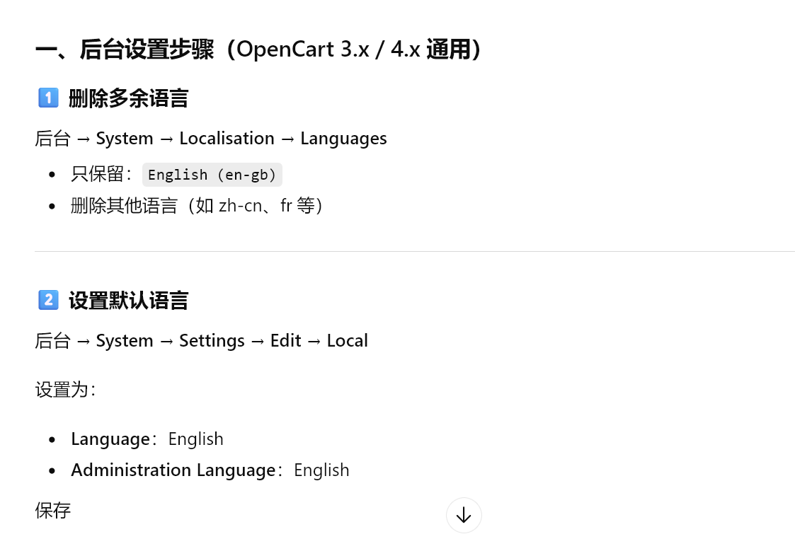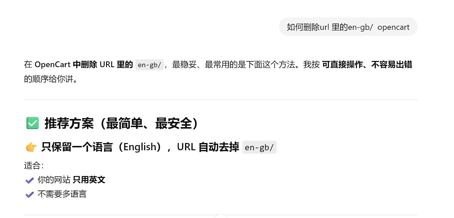 如何去除opencart网站链接里的en-gb